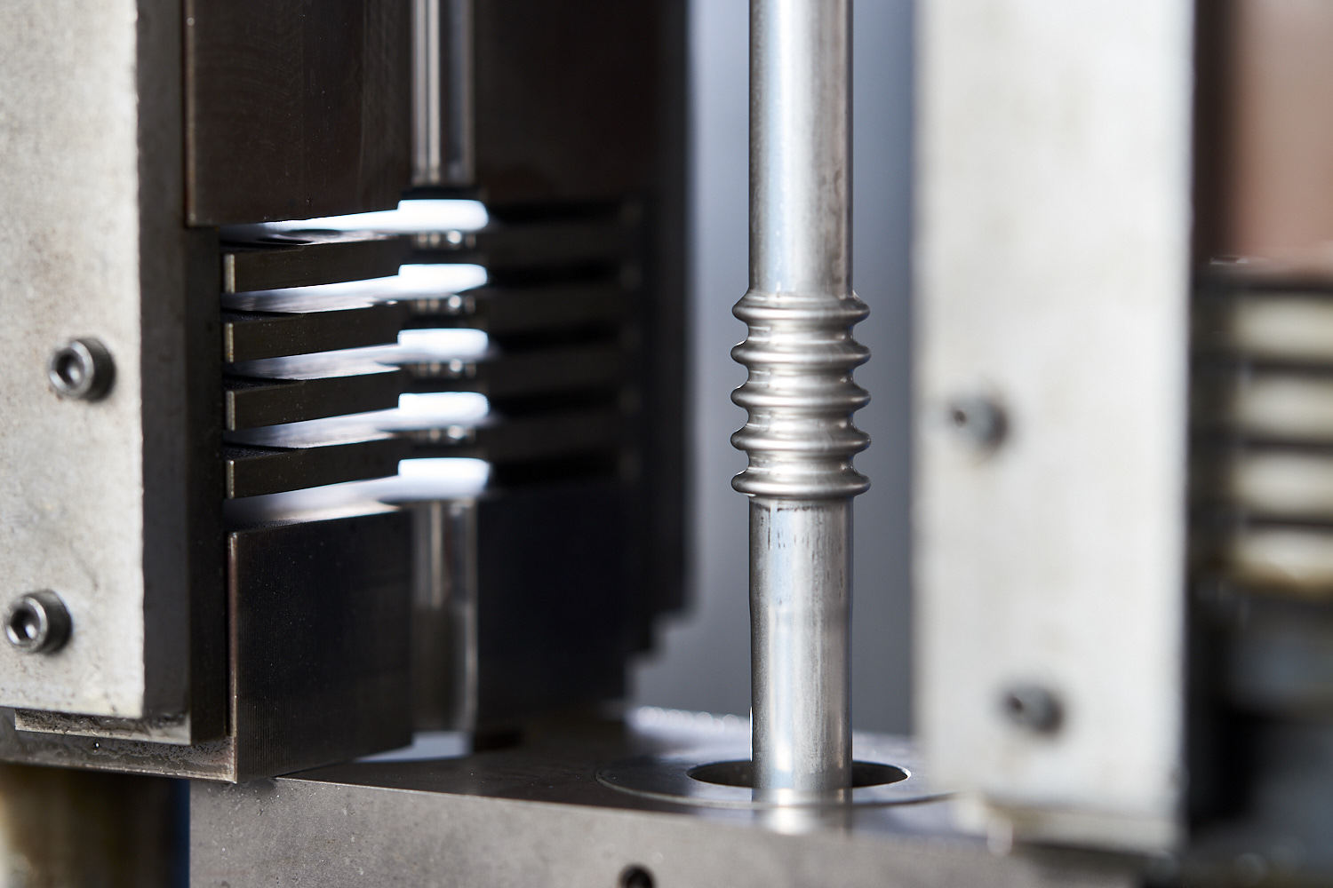 Welche Form, Oberflächen- und Materialbeschaffenheit an einem Rohrende benötigt werden, ist immer abhängig von der jeweiligen Produktanwendung. Hier kommt es auf die intelligente Auswahl des richtigen Umformverfahrens an, damit zum einen die Anforderungen erfüllt und zum anderen die Kostenziele getroffen werden. Mit unserem Anlagenpark beherrschen wir sowohl die konventionelle axiale als auch die rollierende Rohrumformung. Mit Hilfe von rollierenden Rohrumformanlagen lassen sich Dichtelemente mit scharfkantigen Konturen und herausragender Oberflächenqualität herstellen. Neben technologischen Vorteilen bietet das Verfahren auch ein enormes Kosteneinsparpotential, da durch rollierte Rohrenden die kostenintensiven Drehteile substituiert werden können.